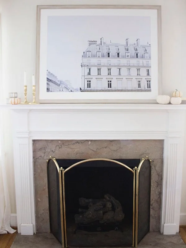 During the Fall, I like to keep decorating pretty simple. My M.O.? Just add pumpkins. Since orange can be a tough color to integrate, mini pumpkins are my go-to coming in a range of colors from white to orange to cream with green and orange stripes. They make the perfect decor accent to adorn fireplace mantels, coffee tables and dining room centerpiece. They are also surprisingly inexpensive hitting a whopping 69¢ at Trader Joe's. They may be small, but they definitely bring the feeling of Fall to a room. Add a pumpkin spiced candle (scroll down for my favorite, Pumpkin Peppercorn) and the room is complete. This year I mixed a couple of pumpkins with my existing mantel decor keeping the color palette simple and neutral with brass accents, height variety and odd numbered accents.
