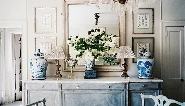 Building off the table, I went looking for sideboards and buffet inspiration and loved the look of this more traditional buffet with ginger jars. I marked this item down on my list as something I think I can DIY. I've been trolling Craigslist for a piece with the right bones to upcycle.