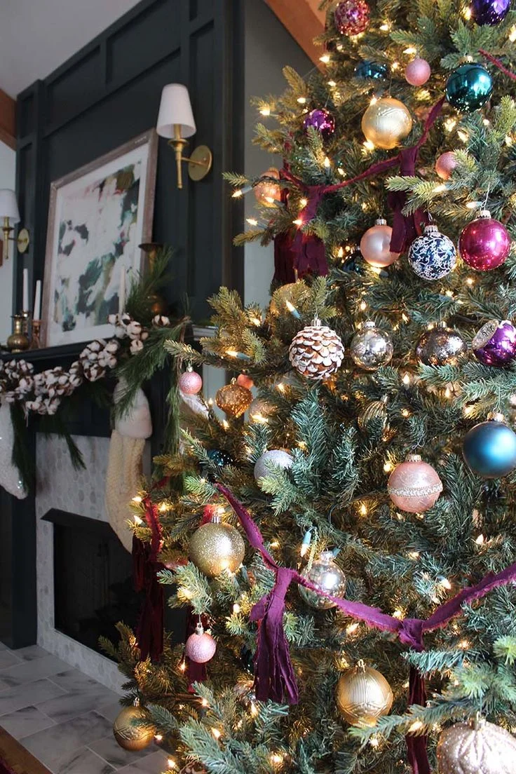 This year is my first year in a new house for Christmas. Last year, I debated over what color lights to use — choosing between white light or the multi-colored lights I grew up. The house I grew up in used multi-colored lights and an assortment of sentimental ornaments for the tree's trimming. Since adopting a crazy kitten Luc, I'm putting a hold on decorating with anything sentimental in case he decides to scale the tree. Instead, opting for using bold color as a fun way to spruce up the tree in a more budget friendly way. Here's a round up of some of my favorite bold and colorful Christmas tree trimmings.