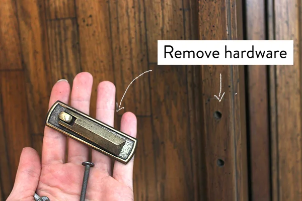 Usually when you're painting with chalk paint, you're going for an antique look. Because of this, the technique actually says not to remove the hardware, but since I wanted to replace the hardware and move it that was my first step.